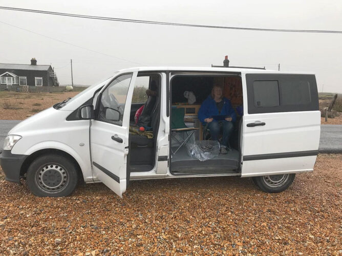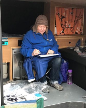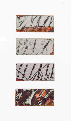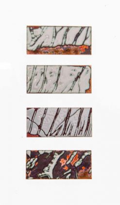 For almost 20 years Siobhan O’Hanlon has developed her passion for working directly from the landscape. Her process involves translating sketches into paintings and printmaking. Siobhan has also began to develop work from the sketches using glass, ceramic and enamelled copper. “This transition into a more physical and elemental way of working is satisfying as part of a process ….. supported by drawing in the landscape from my van studio” Siobhan said.