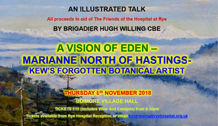Brigadier Hugh Willing will be giving a richly illustrated talk on this neglected botanical artist, in Udimore Hall, at 6:30pm on November 8.