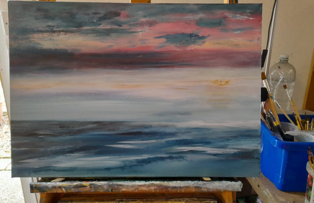 The more they visited, the more they loved the place with its unique and open landscape as well as far reaching views. They decided they could not wait for retirement to make the big change and moved into their bungalow in 2019, not far from the Pilot Inn. Peter and Noel converted part of the bungalow into a self-catering one bed annex for holiday letting with a car parking space. (https://theseaview.co.uk). The property had a double garage which Noel changed into his art studio and their new life began.