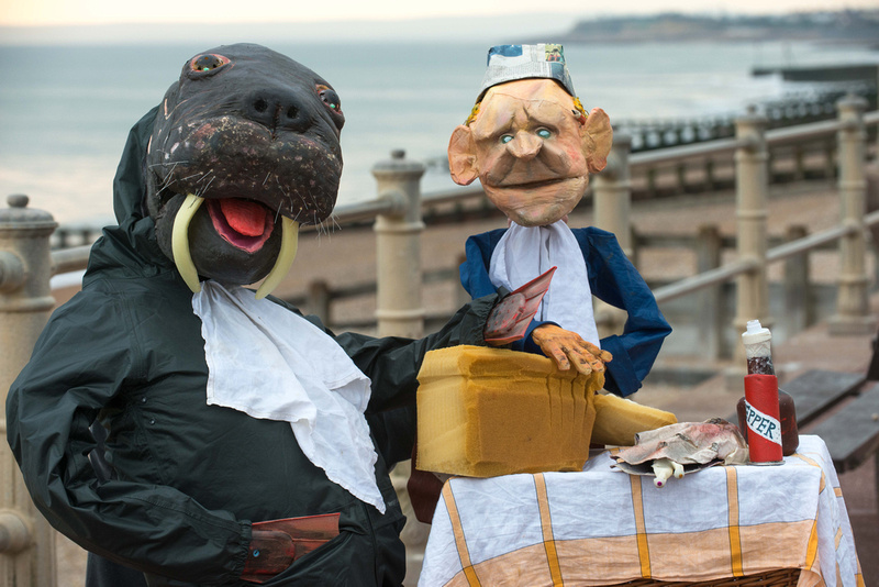 And having chilled, take a step outside the church at 1:30pm and you will hear the Drumskulls banging their drums outside the Kino cinema. They will lead off a parade, with the giant walrus and carpenter puppets, around Church Square. Everyone is welcome to join the parade which will end beside the Methodist Church next to the Gungarden. There, at 2pm, the puppeteers of Idolrich Theatre Company will perform the entertaining The Walrus & The Carpenter – a funny family show featuring two characters from Alice through the Looking Glass!