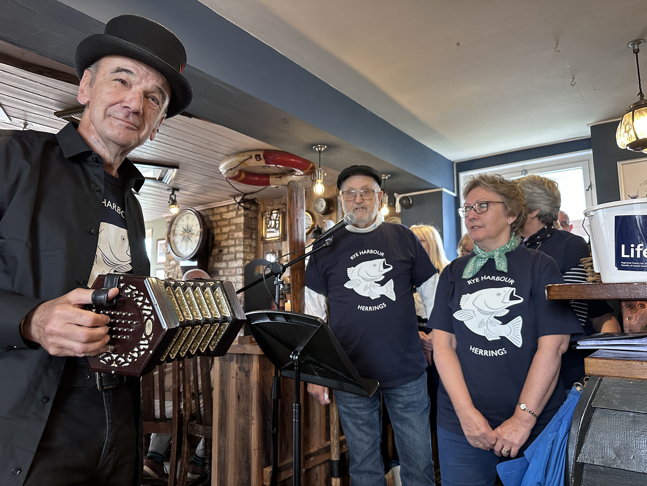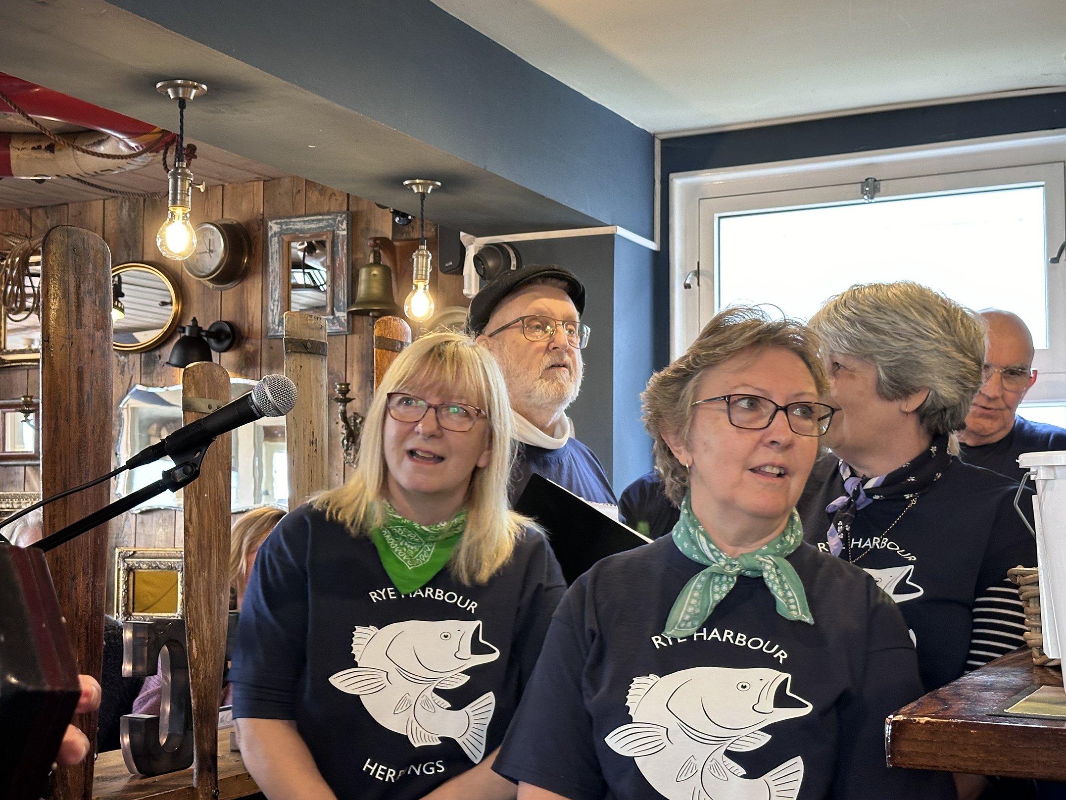 The group is based in Rye Harbour and is unique to the area because many of the songs its members sing were performed and written in the 60s by the famous Johnny Doughty, drawing in a regular Saturday night crowd in those days. Johnny used to say that he would sing as long as the pints kept coming and he was taken at his word. These nights were the highlight of the fishing community, a chance to have a good old sing-along and forget the worries of the working week when the fishermen had been at sea.