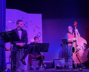 Sally, along with inspired musical director and pianist Malcolm Newton, superb violinist Nuri Köseoglu, accomplished London double bassist Jonny Gee, and charismatic TV actor Jonathan Wrather, delivered performances of the highest calibre. Actor Jonathan’s cool, suave, Bond-esque deliveries were not only highly entertaining and informative but also delightfully humorous — “You expect me to talk??” ,“No, Mr. Bond, I expect you to die!!”