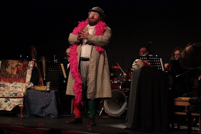 Moments of total madness always help to lighten up any arts festival and Mike Livesley’s performance (with friends, the Brainwashing House Orchestra) of Vivian Stanshall’s “Sir Henry at Rawlinson End”, in the Community Centre on Thursday September 24, was no exception.