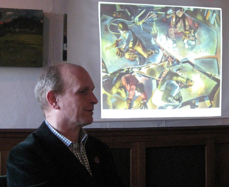In 1941, four large prints were produced from the works of Paul Nash, Barnett Freedman, Edward Ardizzone and Stanley Spencer reflecting various aspects of Britain’s war effort, military and civilian, and Dr Rennie explained how the Ministry of Information decided that all four images should be printed and distributed, at cost, to factory canteens and other venues. This was a serious attempt by the National Gallery to widen access to the work of the Official War Artists. Kenneth Clark, who was on the War Artists committee and became one of the pioneers in making art accessible to all, went on to present the 1960s television art programme ‘Civilisation’.
