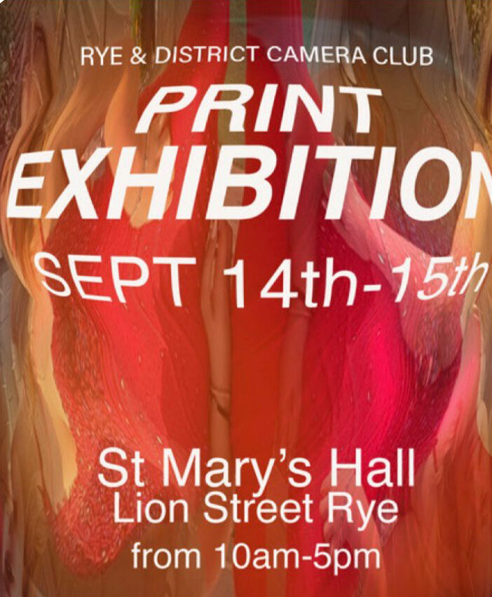 Rye and District Camera Club, established in 1956, is holding its annual exhibition at St Mary’s Centre by the Kino cinema on Saturday and Sunday September 14 and 15 from 10.00am until 5pm. Around twenty members will be showing their pictures and there will also be competition-winning pictures from last season on show. Admission is free and there will be club members on hand to answer any questions you may have; there will also be cards and prints for sale and the chance to vote for your favourite picture on show.