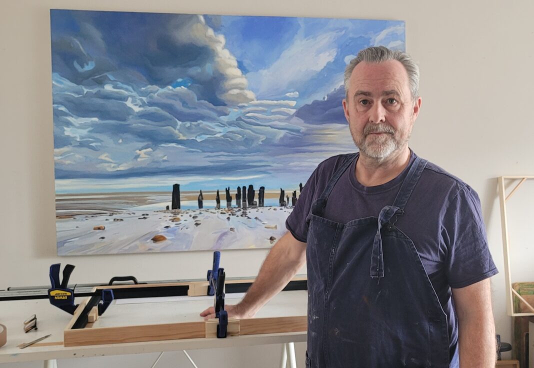 Adrian has a close connection to the beaches he knows so well having grown up in Hastings and recently returned to live in Fairlight, and his love of them can be seen in his paintings. They capture the atmosphere and character of the beaches, that change constantly through the movement of the tides, the clouds and the shifting light.