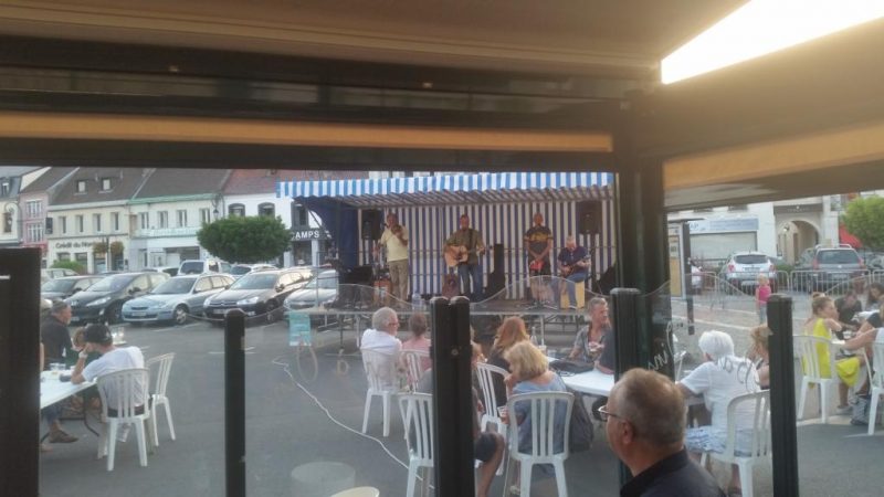 An hour or so later we were in Montreuil at La Tannerie, a rather good b&b with a huge garden. We had the evening to ourselves, but Wednesday, Midsummer’s Day, was the day of the concert. Montreuil has a main square in the old town called Place General de Gaulle, probably one of hundreds in France. And it was in the square outside the main bar restaurant that the three players, the irrepressible Reg Marchant, Phil Traynor and Steve Stone, would be performing their stuff in the evening which was to be the start of a midsummer Fete de Musique.