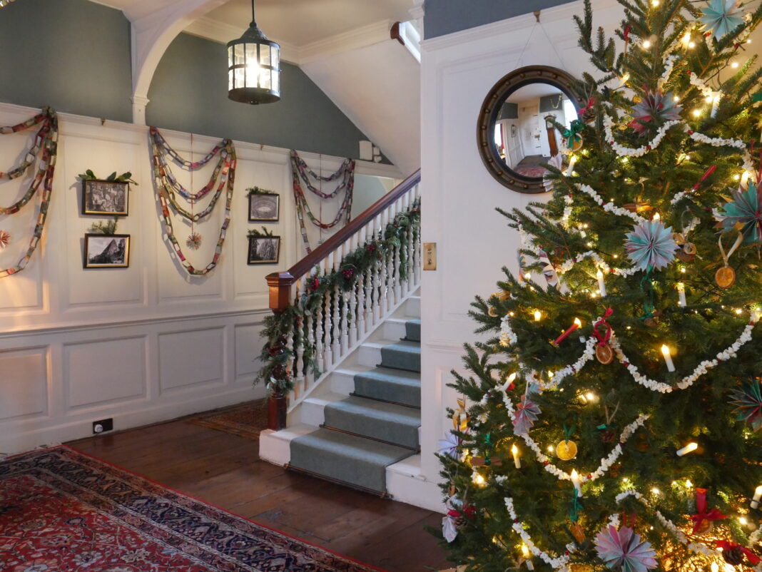 A typical New England Christmas display: homemade decorations made of natural materials, the era of mass-produced Christmas decorations not yet upon us.