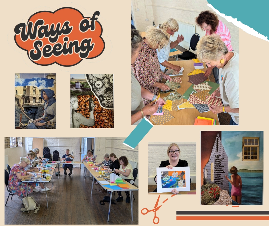 This summer you may have noticed posters on community noticeboards tempting people to ‘Cut, Snip & Rip It Up in Rye.’ Well, a wide range of Rye residents and visitors have certainly cut, snipped, ripped, and much more at the summer collage workshops on offer from Ways of Seeing.