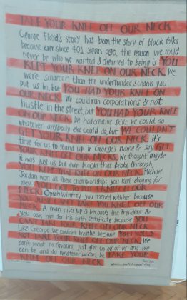 The way of displaying the art is very environmentally friendly, having built a wooden structure (still with its beautiful, natural looking markings) that is light and one can see through window-like openings to the other spaces, very clever. Well worth visiting for the eclectic art and inventive display. “MARGINS: Studio Summer Show” is open until August 20, – Monday-Wednesday 10am -4pm / Thursday-Sunday 10am – 6pm.