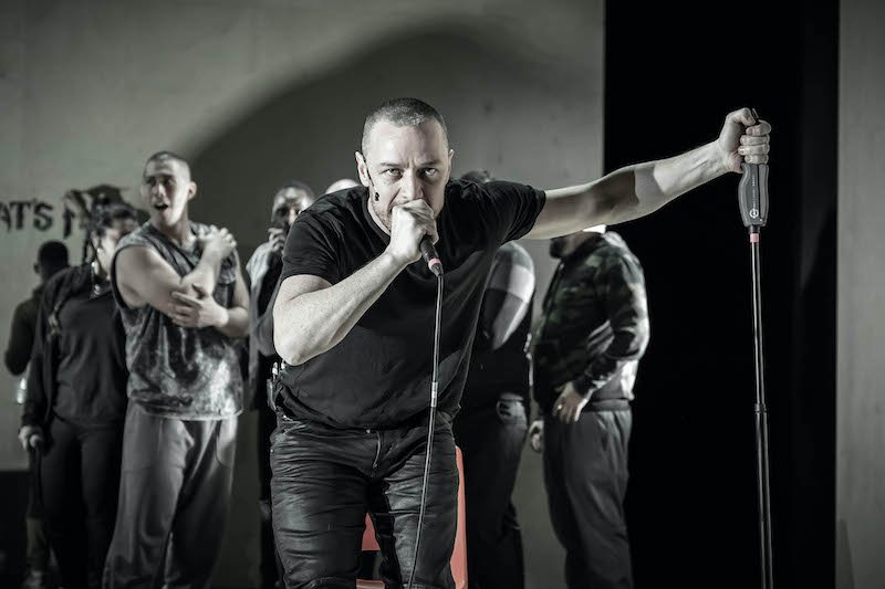 Jamie Lloyd, rated as the ninth most influential theatre-person in the UK by The Stage, made a dramatic choice in depriving lead-actor James McAvoy of Cyrano’s most prominent attribute. (The absence is deftly dodged in Crimp’s text but remains the elephant in the room. Cyrano refers to it as his “elephunt”.) Lloyd’s rapping actors – all admirable servants to the cause – switch from hand-mikes to stand-up mikes, relying on face-mikes to make their rhymes heard. The device sort of works on stage; who knows how it will play on film.