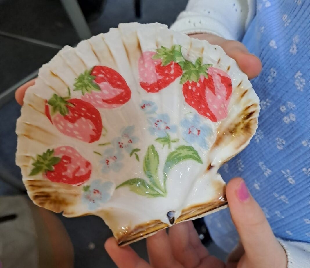 Rye Castle Museum held a children’s craft afternoon on Thursday 19 February during half term. As it was coming up to Rye Bay Scallop week, the activity on offer was covering scallop shells with decoupage and the results were impressive.