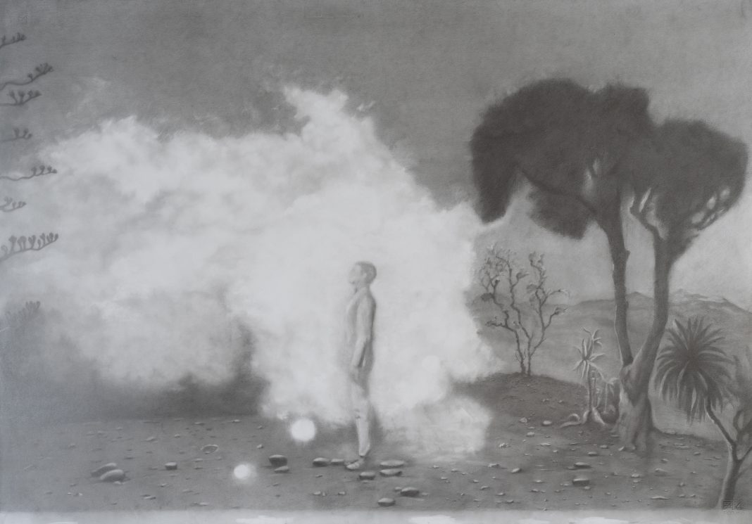 The catalyst for these drawings was a newspaper image from 2016, that looked like a portal to another world had opened in the sky above Hastings. This was a Fata Morgana – a type of mirage that significantly distorts the object on which it is based, so that the object is completely unrecognisable.