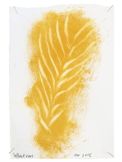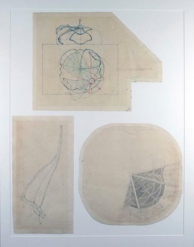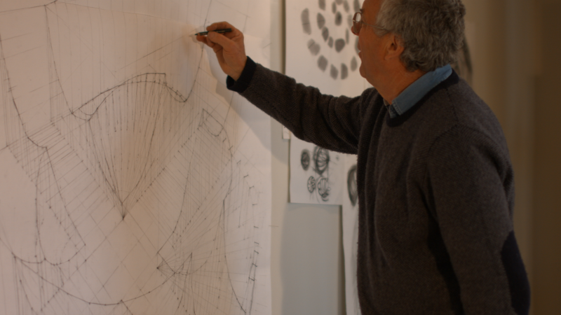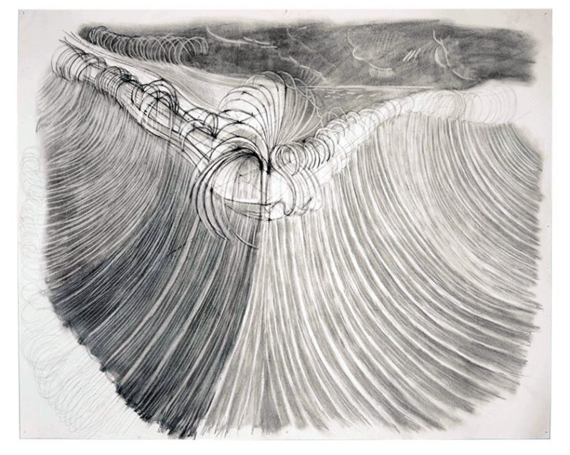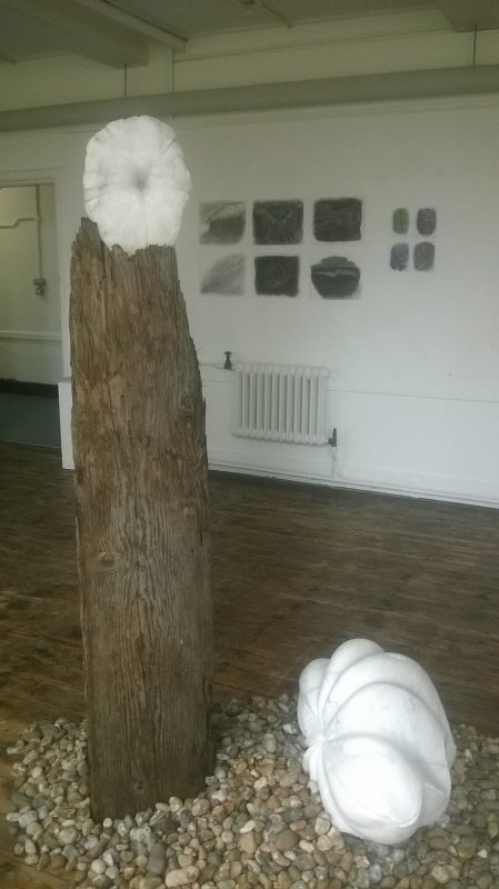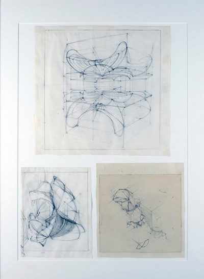 His work brings together the rigour of architectural drawings with studies from organic forms, explaining his fascination and passion for the natural world. The drawings are beautifully detailed. Some are earlier works which were produced for community projects and buildings. His recent work features, as part of the collection, ‘Nature Moves’, showing drawing and stone carving studies that reveal a more abstract method and include images of water, shells, fossils and wheat.