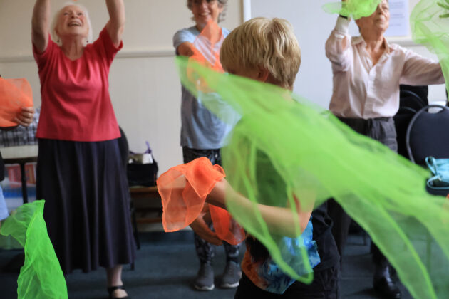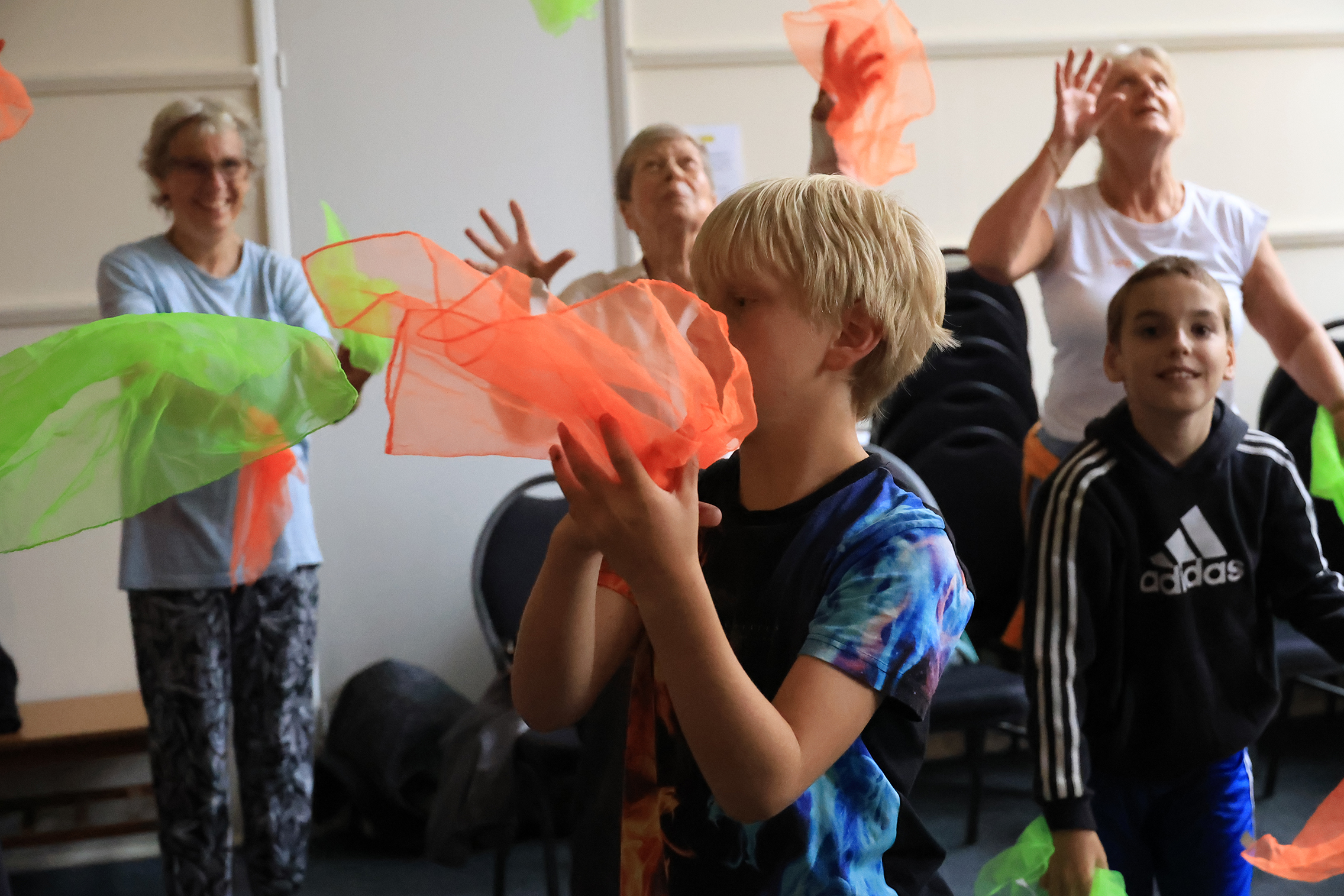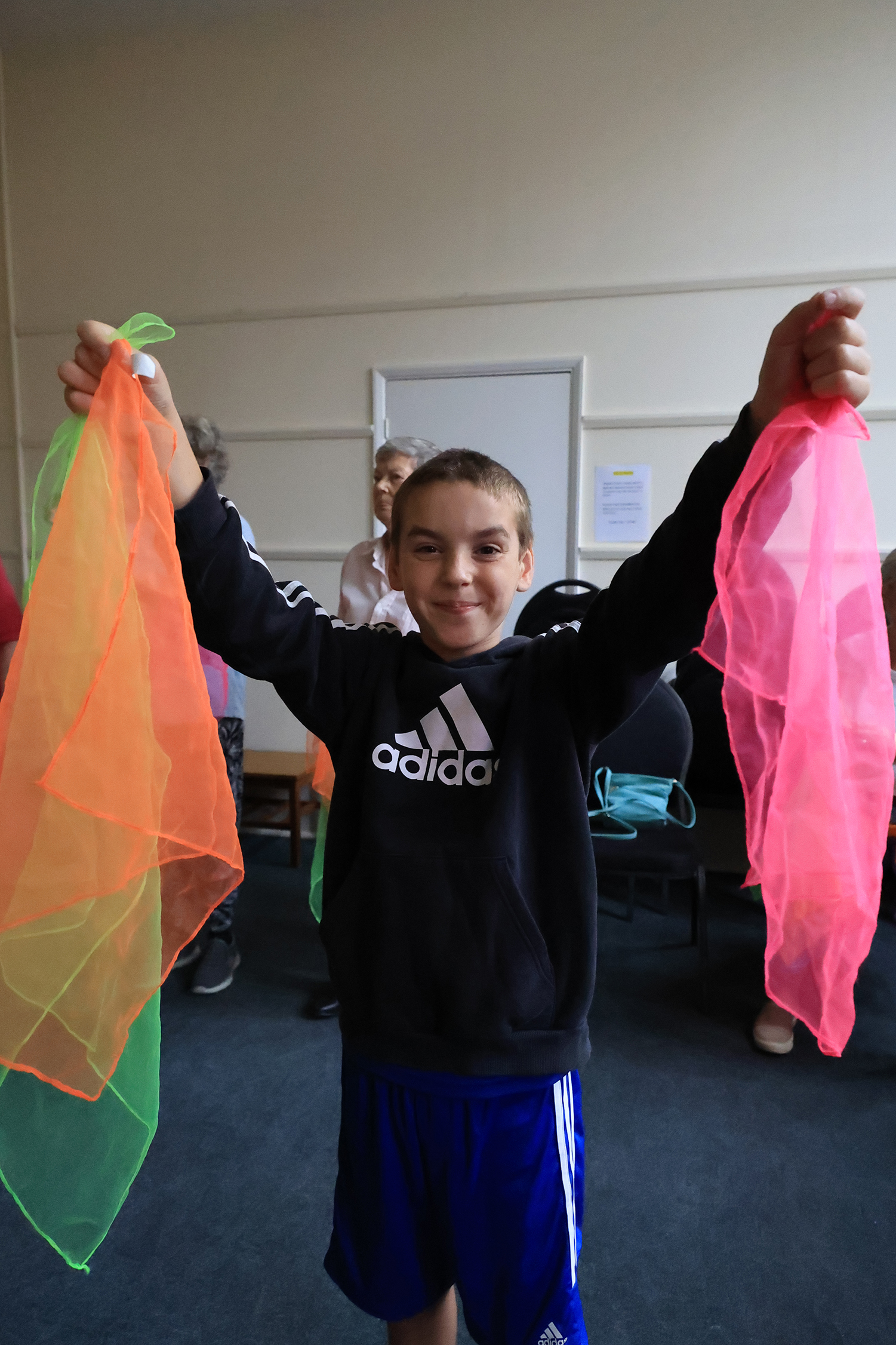 In the adjoining room at the St Mary’s centre, Graham Ellis ran a juggling workshop. Graham is retired circus director and using slow-moving scarves, (although they did look quite fast-moving with a mind of their own at times), he enabled all who took part to learn the impressive skill of juggling.