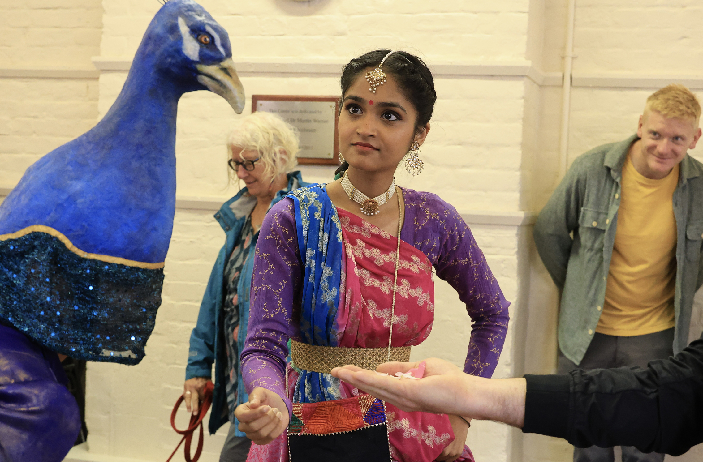 Mughal Miniatures’ display of The Princes and the Peacock was enchanting. The graceful movements of the dancer and peacock, together with the eye-catching colourful costumes, drew the audience in and the delight on the children’s faces was heart-warming. The children were invited to feed the peacock and dance. Some were a little hesitant at first but loved it when they did.