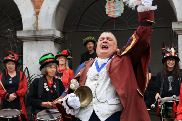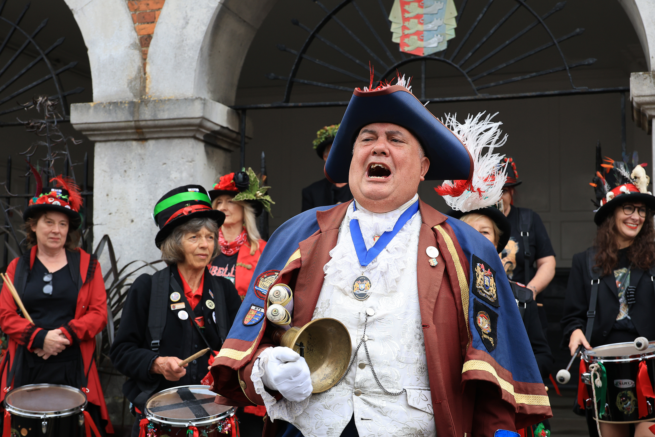Just before 11:30am our inimitable town crier, Paul Edward Goring, cried his most eloquent cry to welcome people to the arts festival activities, music and events.