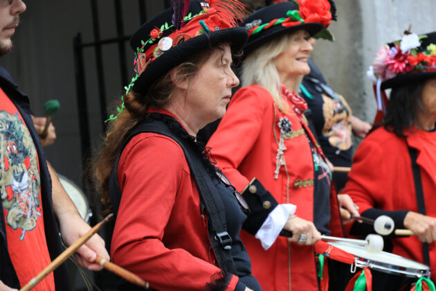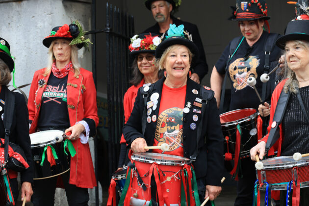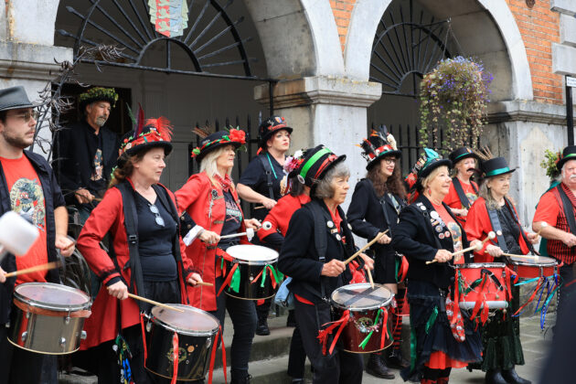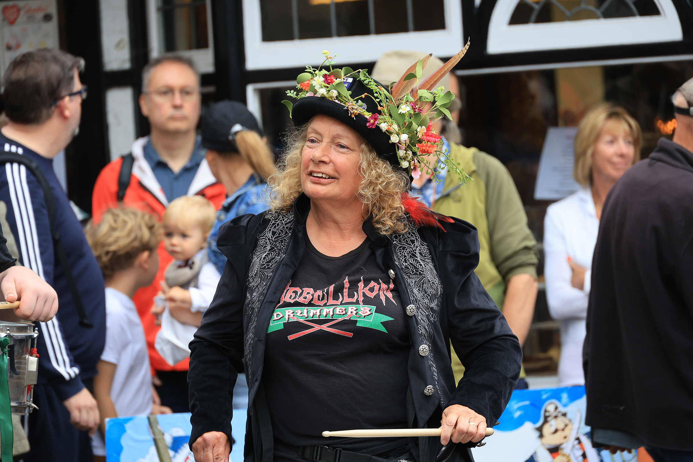 As if this wasn’t enough the streets resounded with the peal of whistles from the Devious Dolphins. The children loved it as they ensnared them in their nets and squirted water as they tried to escape. There was a dolphin dance which although quite simple did have some people going the wrong way in the quadrille!