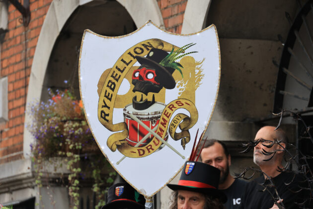 11:30am and Ryebellion certainly drummed up a crowd and entertained them splendidly for half an hour. The rain cascaded down but the show carried on and many of the crowd stayed to support the drummers, ending up extremely soggy. As the arts festival brochure put it: “You really can’t better the Ryebellion beat.” Everyone was swaying along to the music and all agreed.