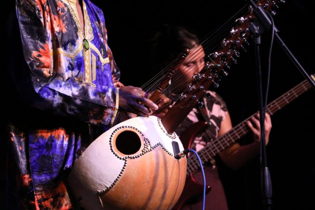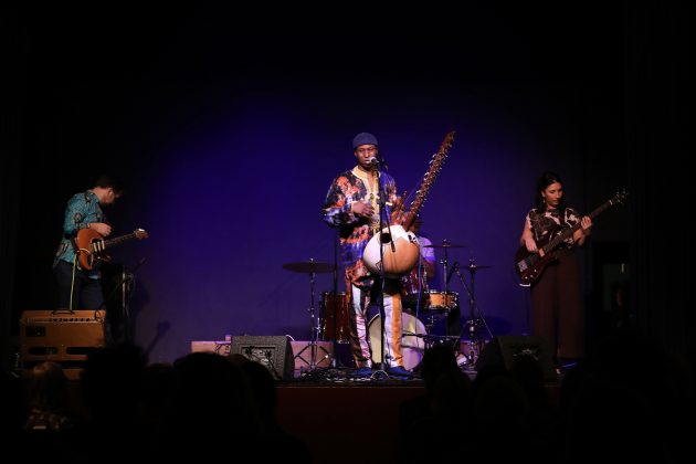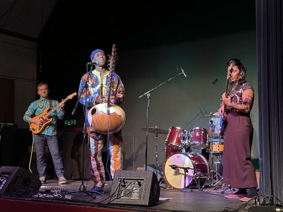 Until the evening of Friday, September 24 at the Community Centre I had never heard or seen a kora. This large, stringed instrument has its origins in West Africa, where it is used extensively. From a resonator fashioned from a gourd split in half rises a long neck, to which twenty-two strings are attached. The resultant sound is a cross between a harp and lute. On this occasion the kora was backed by Sound Archive, an electric guitar, bass guitar and drum kit. If on paper this sounds a surprising combination, in concert it worked brilliantly. Kadialy Kouyaté is a virtuoso, not just as instrumentalist and singer but also as a teacher at the School of Oriental and African studies in London.