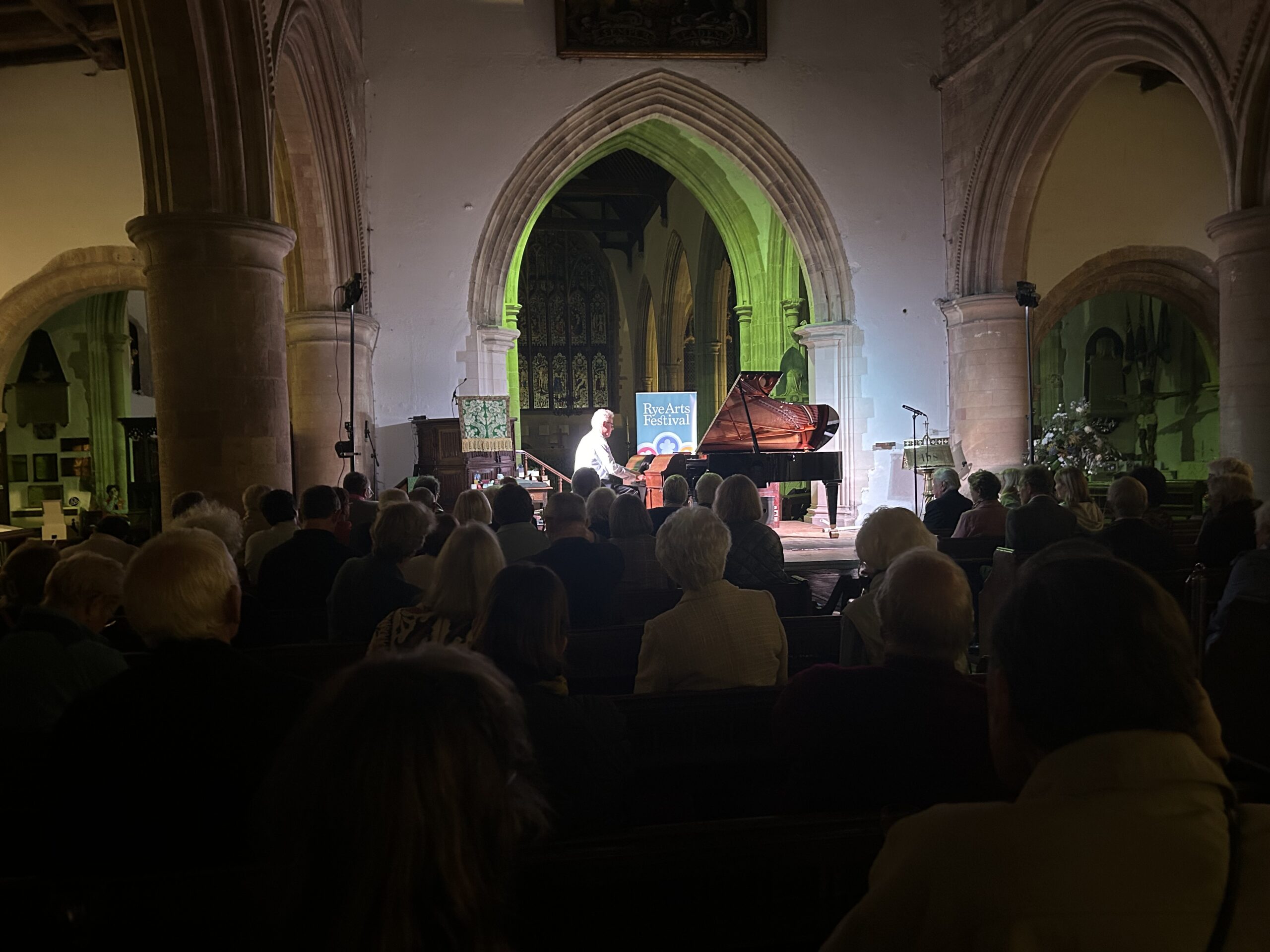 Monday evening and the audience in St Mary’s in Rye is listening to George Gershwin playing “Rhapsody in Blue”.