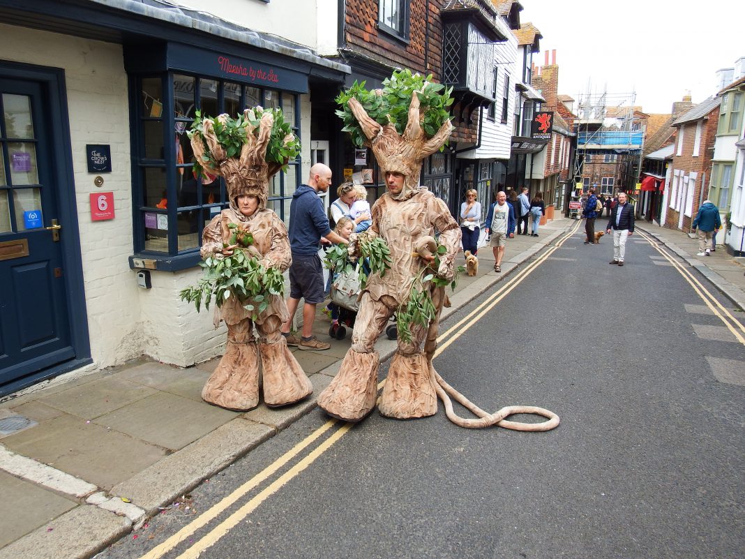 There were various unannounced sideshows to accompany the opening of the Rye Arts Festival. It was on Saturday afternoon, September 11 that I encountered two handsome trees named Rustle and Oleafia. They had walked from the Amazon, said Rustle, to bring people’s attention to the fate of their friends who had been summarily executed in a forest clearance campaign. I was beaten across the shoulders by a twig-wielding Oleafia and offered a wish.
