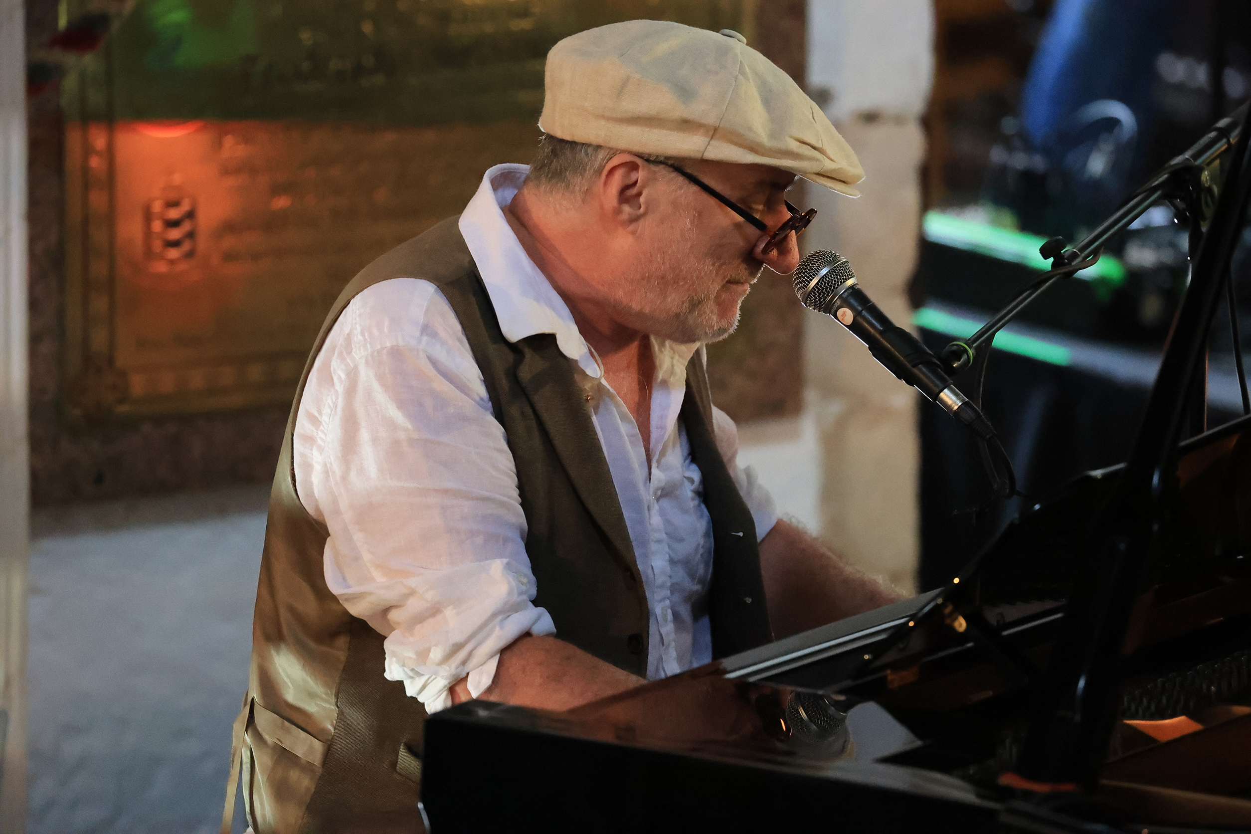 On Monday, August 26 the church was packed and fans eagerly awaited the arrival of Jon Cleary. Jon is a British-born musician, singer, and songwriter renowned for his mastery of New Orleans-style music. Born on August 11, 1962, in Kent, Cleary moved to New Orleans in his early twenties, driven by a deep passion for the city’s rich musical heritage. He quickly immersed himself in the local music scene, becoming an accomplished pianist and absorbing the distinctive sounds of New Orleans funk, R&B, and jazz.