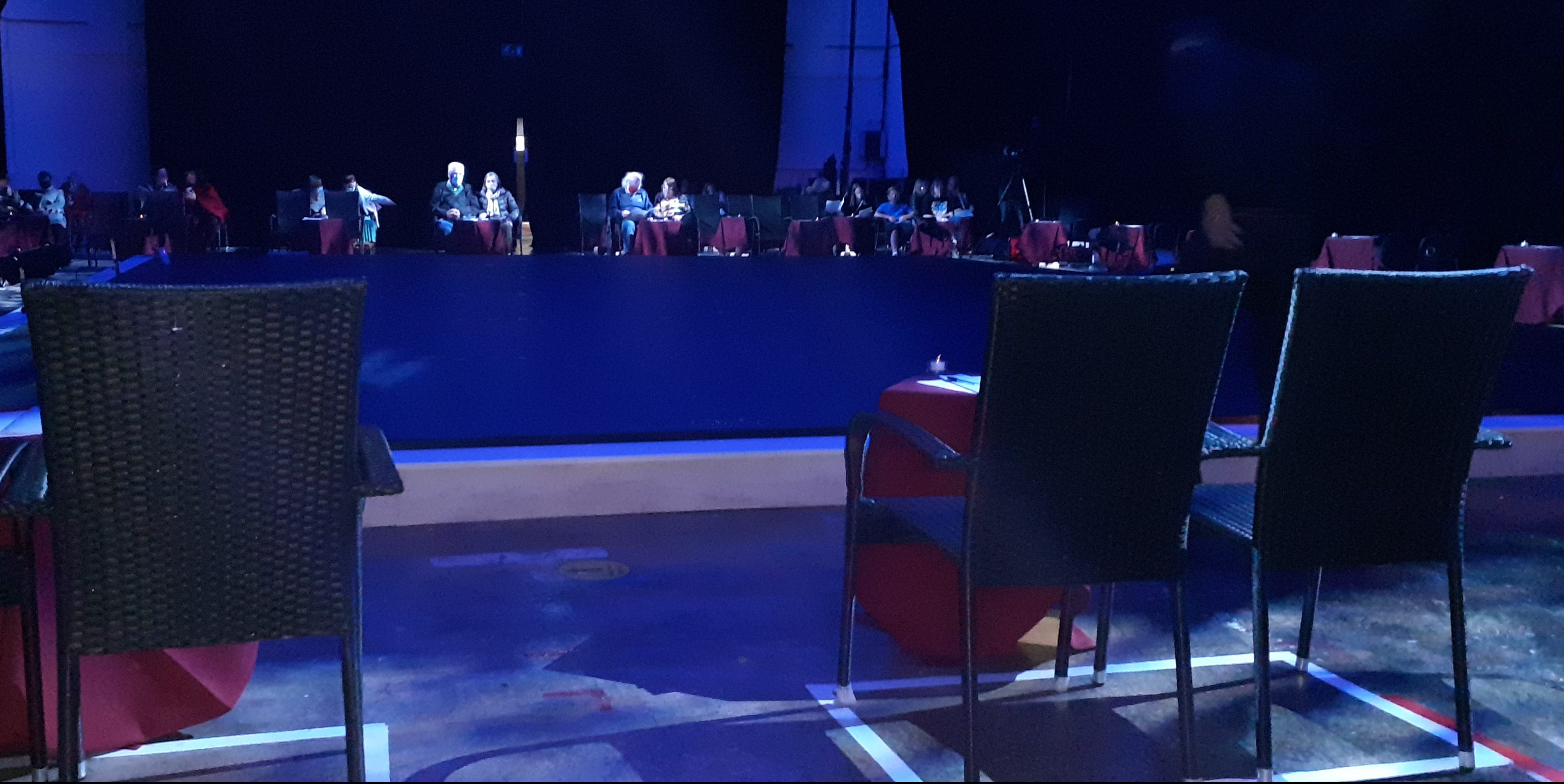 Bridgepoint is the creative arts complex in Rock Channel and before the pandemic they offered a few pop up art and music performances. The weekend of September 26 the vast space was again transformed into a Covid safe performance venue. Light visors were distributed to wear when moving around or, if preferred, masks. The audience was seated spaciously, two seats to a table around the stage. The lighting by Rob Casey / Tom Turner contributed to a very atmospheric mood in the large room.