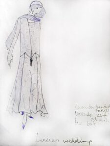 I enquired about the process of selecting outfits for the characters. Apparently costumes are either hired, found or borrowed. Frances had to find items from suppliers such as Gallery of Antique Costumes and Textiles, in London, and Cosprop, also based in the capital. “You source things from all over the place. The Egyptian coat that Lucia wore at the beginning was pure luck. I was in Gallery of Antique Costumes and I just picked it up and thought it was perfect.”