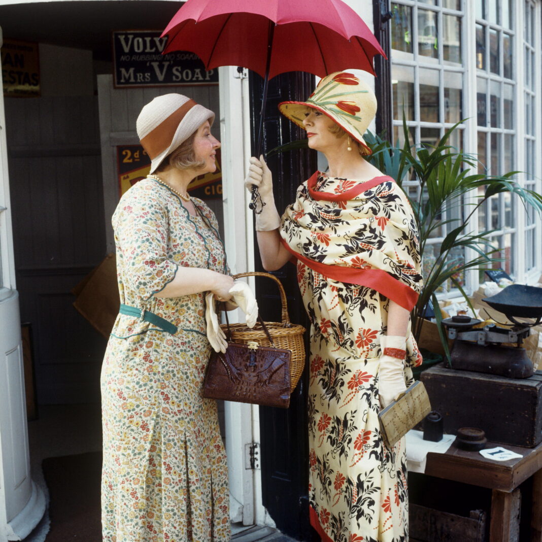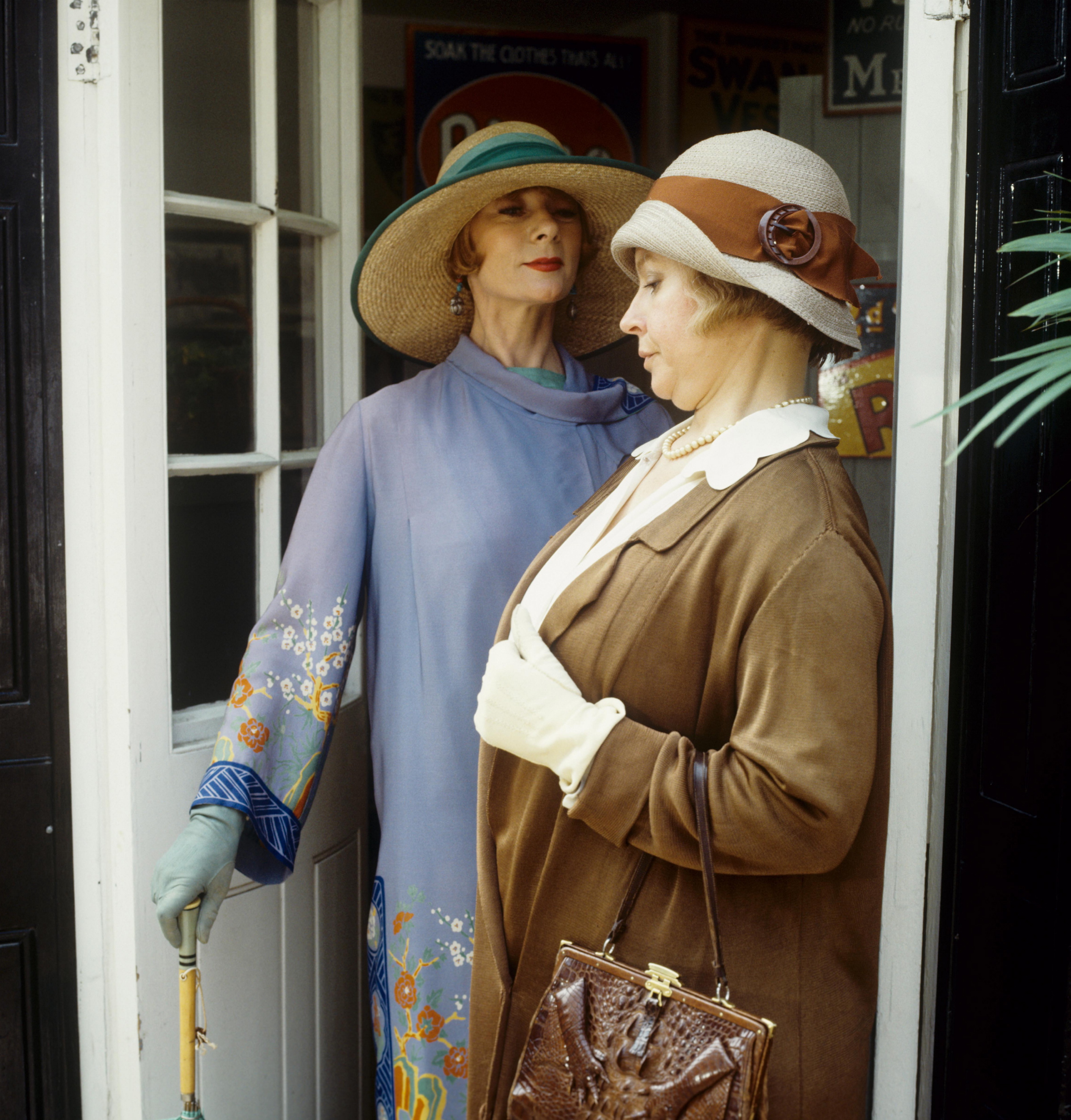 When I watched the series being filmed all those years ago, I recalled having been told by one of the road crew that Prunella Scales had been padded for her part as the stout Miss Mapp. Frances confirmed this. “Prunella is very petite and proud of her figure. We had to make a body suit out of padding and create a silhouette – and after filming, there was Prunella Scales ‘body’ hanging up in the costume truck! I had to design clothes around it. It must have been very uncomfortable in the heat but she never complained. However, after filming she would make a point of wearing her tight white jeans and inform people: ‘I was wearing padding for the part’!”