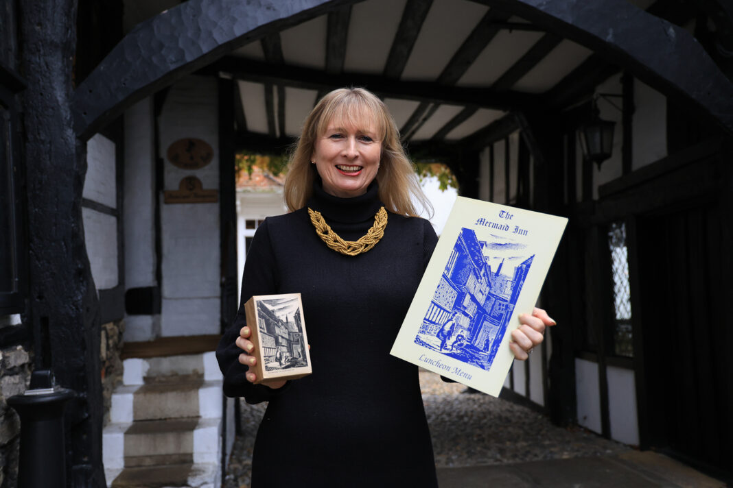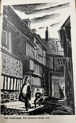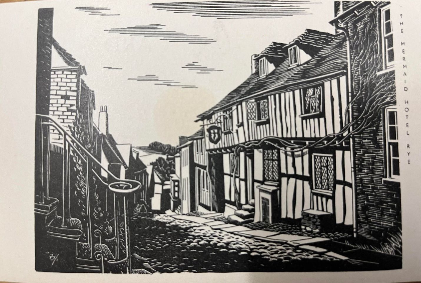 Judith Blincow went on a foray to Rye Auction Galleries Ltd (RAG) last week and was lucky to find six-hundred postcards depicting The Mermaid Inn and Mermaid Street, and their original printing blocks, belonging to Rye’s famed mayor and artist, GS Bagley.