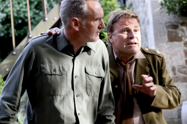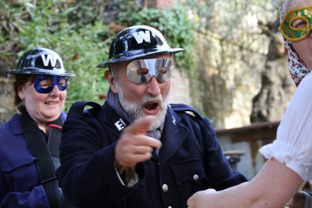 The play itself was mostly in the memory banks of the cast that performed it at St Mary’s in June. But there was still work for director Paul Thomas to do in order to refresh those memories and help the actors make the necessary change from an indoor to an outdoor setting. Another challenge was to replace two cast members who weren’t available last weekend. So we felt very fortunate to have been able to slot in two brand new members, Poppy Baldock and Ruth Gibson, who did so well as Hero and her attendant, Lady Ursula.
