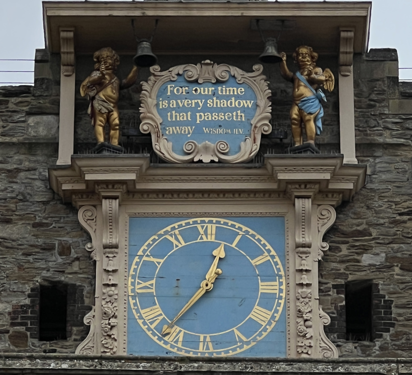 Small point: Lewis Billiard probably did not make the St Mary’s clock. He had been apprenticed to the Royal clockmaker, Alan Bawdyson, and the clock in all likelihood came from Hampton Court Palace, having been replaced there by the elaborate clock one can see today. Keith Scobie-Youngs of Cumbria Clocks, the company which maintains ours, has established that of the three very similar tower clocks (the others are in Wells and Salisbury cathedrals) ours is the oldest, and is thus the oldest church clock in the country, and the only one of the three still in its original position. Just to note also that the CCTV engineers are attending next week to disentangle the cable that has wound itself around the hands shaft, so our very special clock should be up and running again soon.