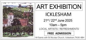 Historic Icklesham All Saints with St. Nicolas Church are fundraising this weekend, June 21 and 22. An exhibition and sale of art is taking place inside the church along with teas and cakes being served in the St. Nicolas Chapel.