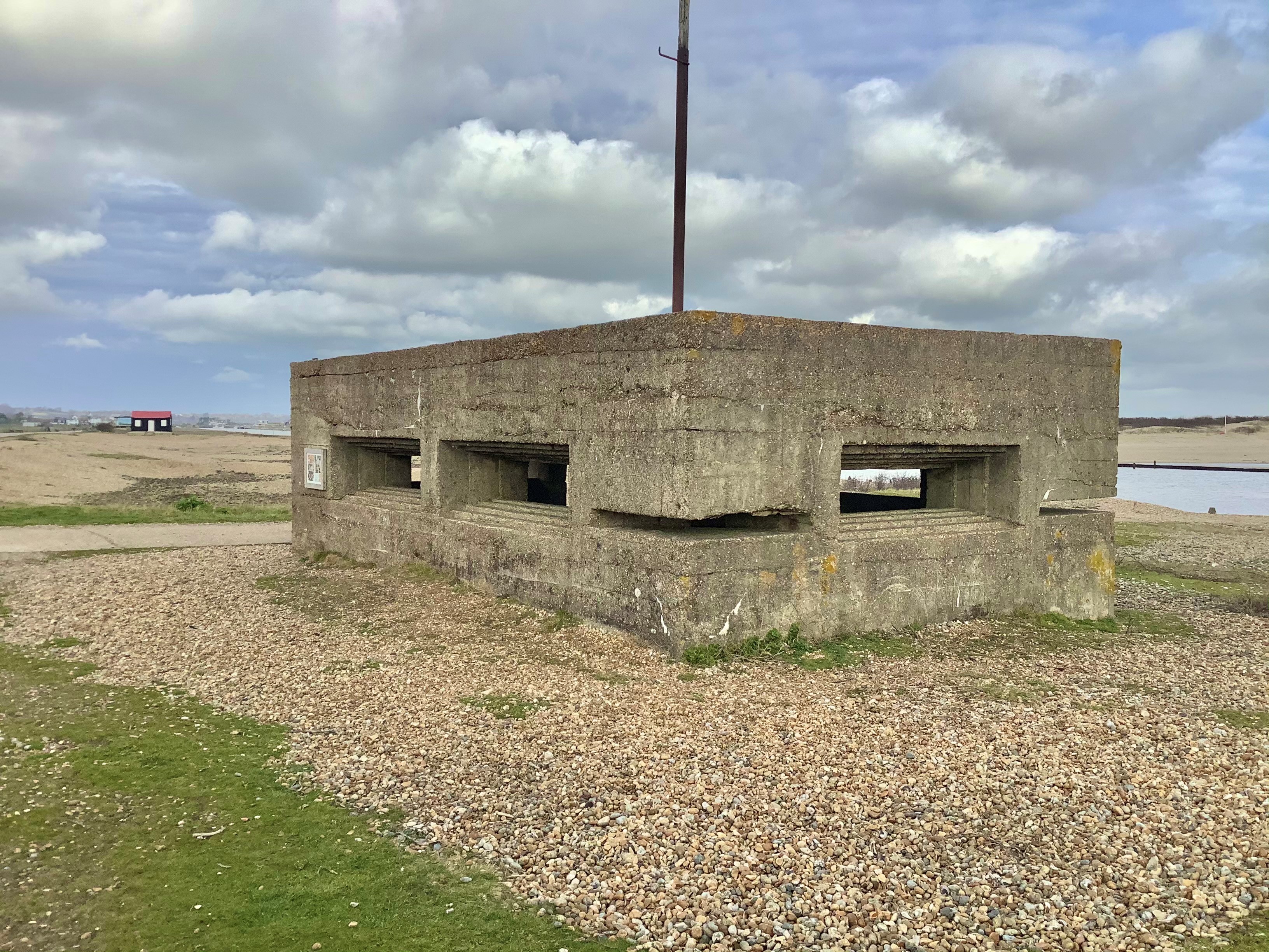 Walking past the new nature reserve visitor centre you come across Norton’s Hut, an iconic building, its distinctive corrugated red roof the backdrop to thousands of ‘selfies’ and shortly after, a concrete bunker, a former 20th century gun emplacement keeping watch where the sea meets the mouth of the river Rother. Who would have thought that something so utilitarian and basic in its form and construction could have played such an important part in our past and walking through it you get the feeling of what life might have been like for its former occupants.