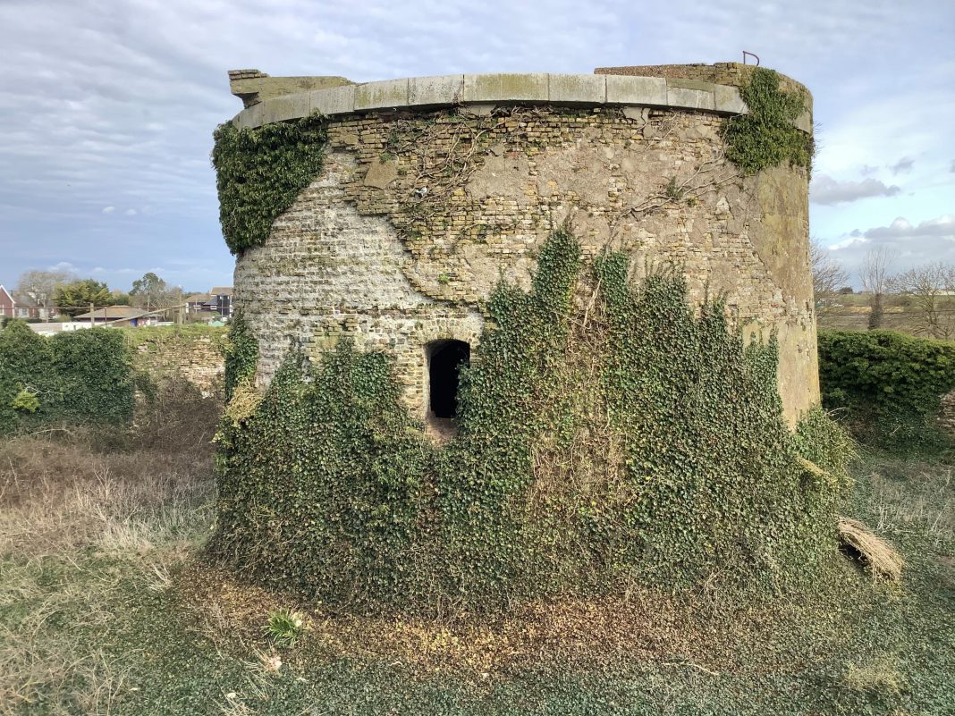 Adjacent to the car park, encircled with security fencing, is the remains of a 19th century Martello tower, formally an important component in our strategic coastal defence network and part of our rich cultural history, sadly now derelict, and now a safe haven and home to numerous pigeons.