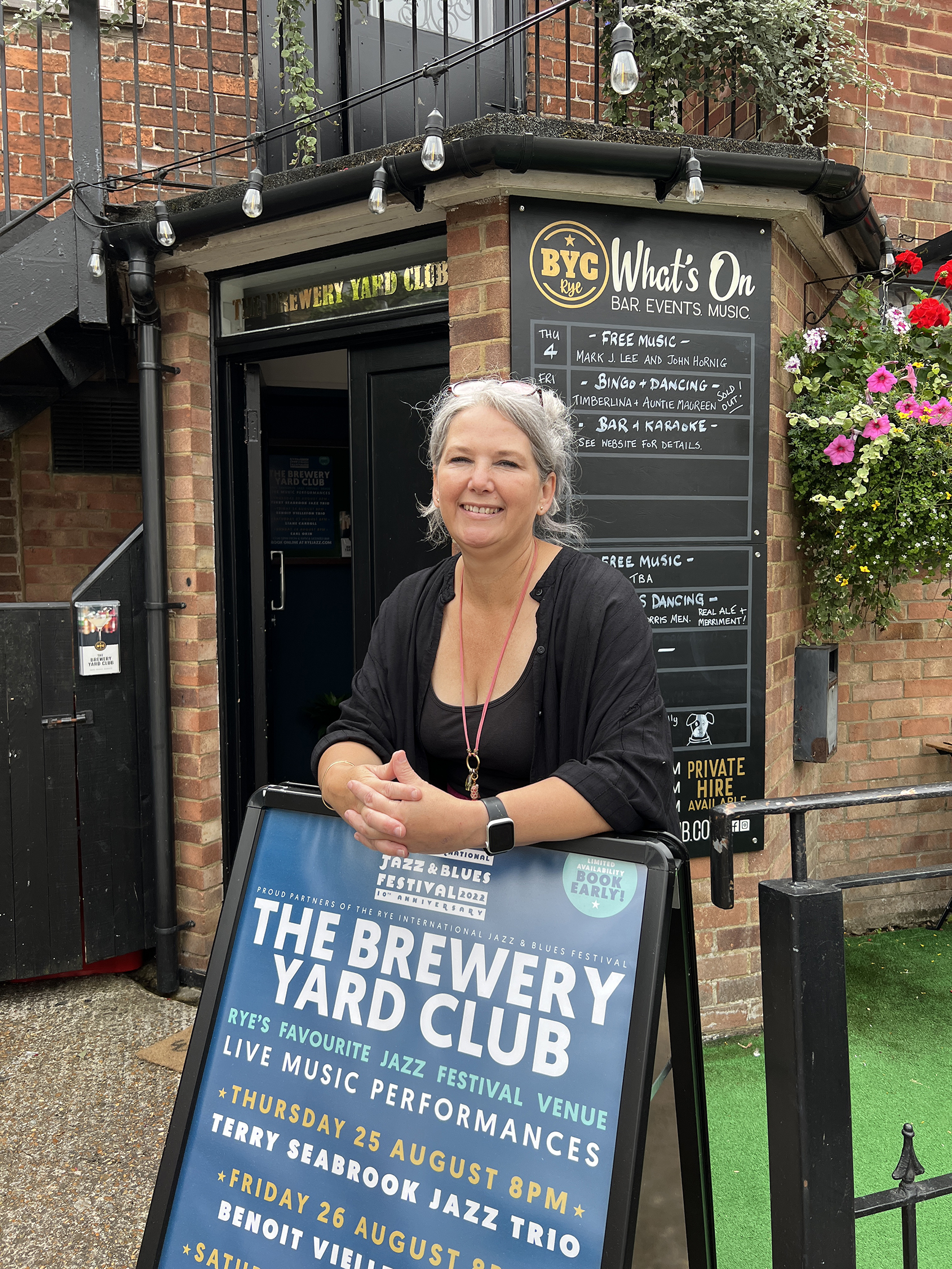 Jane Brook runs the Brewery Yard Club, Landgate, in Rye. She loves this space. Having been in the software world for a long time, the Brewery Yard gives her a creative outlet.
