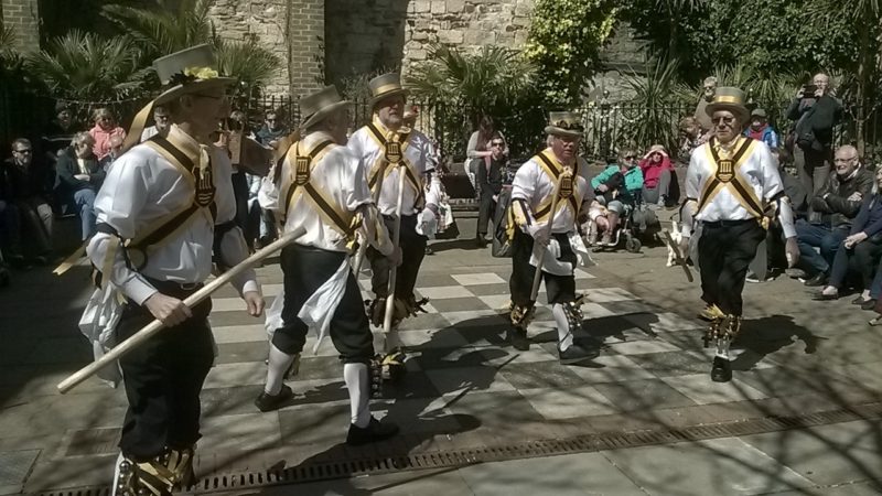 The town was buzzing and in George Street there is a square where people usually play chess on the ground which is always fun to watch. But this day was morris dancing. While it is not my favourite entertainment I stopped and watched and one has to admire the stamina of the men (no woman in this group) who, if I may say, are of a certain age. Independent of that their energy was boundless. I am fairly fit and love dancing but would not be able to keep up. I was interested in its past so did a bit of digging as I knew little of its origin.