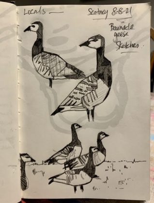 Spray cans – I was into graffiti in my early days. Then I progressed to acrylics. When I got into birdwatching it naturally progressed to artwork. I prefer watercolour and pencils now.