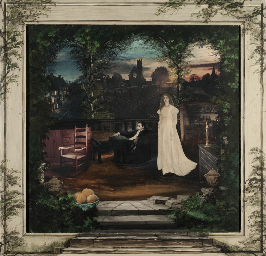 Now, Dr Fanny Baldwin, a trustee of the Rye Art Gallery (RAG), has been able to source two of her art-works, and writes: “Her work is mixed media, very dream-like, fantastical, theatrical and includes Victorian paper cut-outs. It is her painting that does better justice to her imaginative vision; she had a wonderful imagination.”