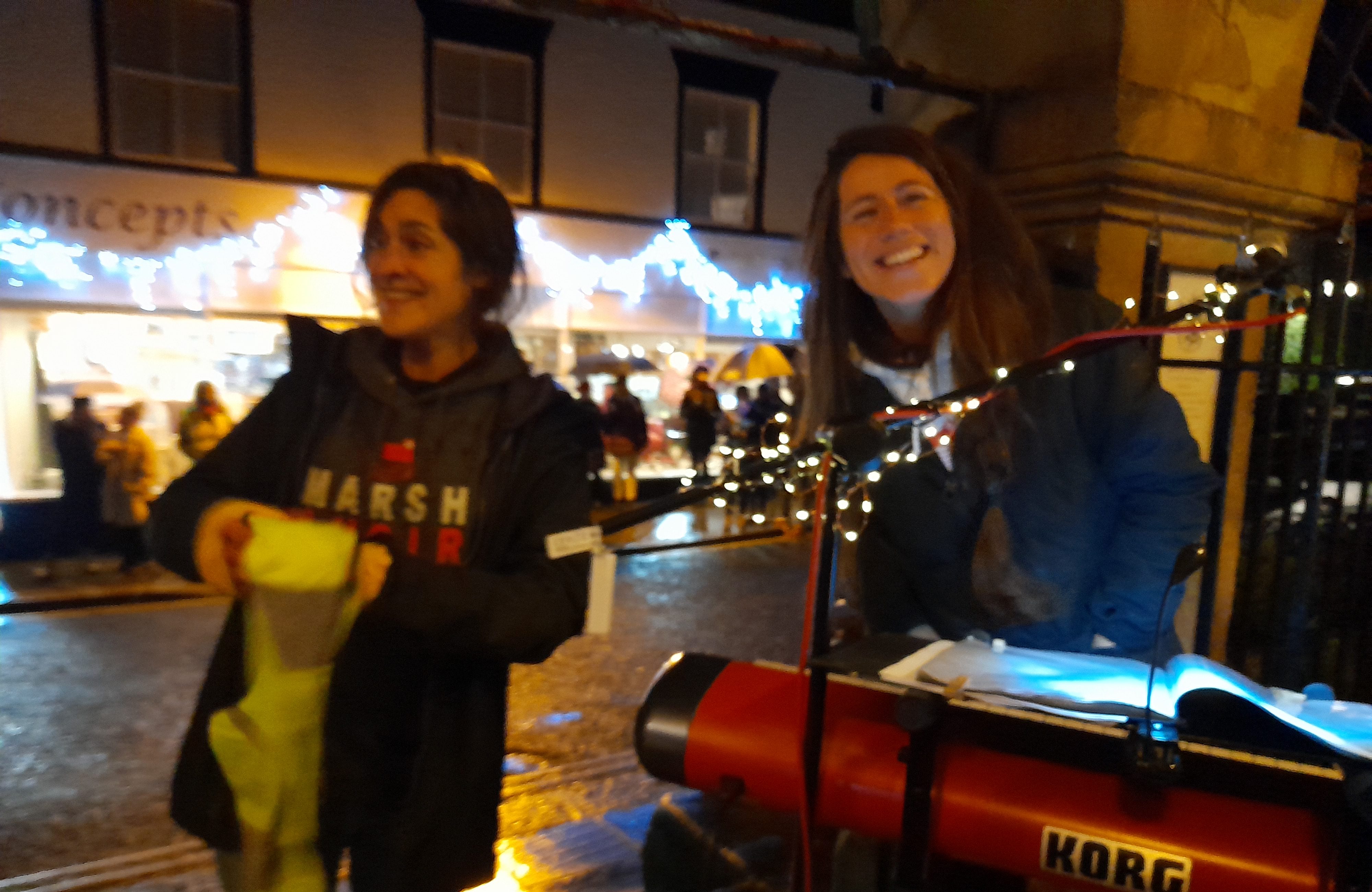Later in the afternoon, the music started. Drummers walking around town, jazz in the Kino terrace and the wonderful Marsh Choir at the Buttermarket in Market Street. Carly, who is the leader of several Marsh choirs is inspiring and full of energy which makes singing with her pure joy. She is able to get everyone, altos, tenors and sopranos to learn her harmonies in less than an hour, finishing with a beautiful sound. Sadly it was raining but a stoic audience stayed to the end. A great day even with drizzly weather.