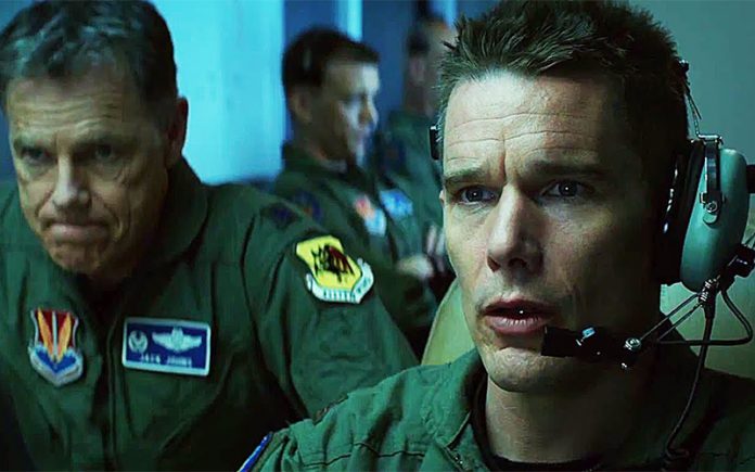 Good Kill 101 mins [15] The story of a Las Vegas fighter-pilot turned drone-pilot, who fights the Taliban via remote control for half of his day, then goes home to his wife and kids in the suburbs for the other half. But the pilot is starting to question the mission. Is he creating more terrorists than he’s killing? Is he fighting a war without end? One soldier’s tale with epic implications. Starring Ethan Hawke, pictured above and January Jones.