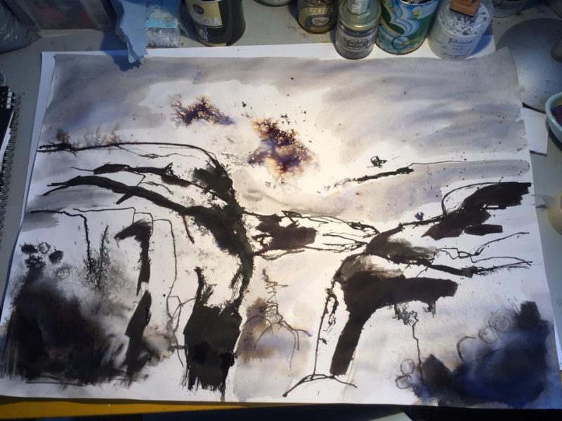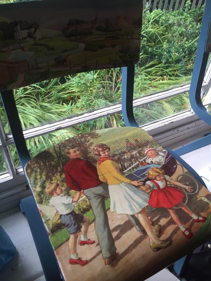 Also on show are decoupaged chairs from Fern Adams, I really liked them, and a selection of illustrated prints and original paintings from Evie May Adams. This is an excellent opportunity to buy direct from the artists and find out about their inspirations for the work, before Richard and Evie’s next combined show at Hybrid Gallery in Honiton, Devon at the end of September.