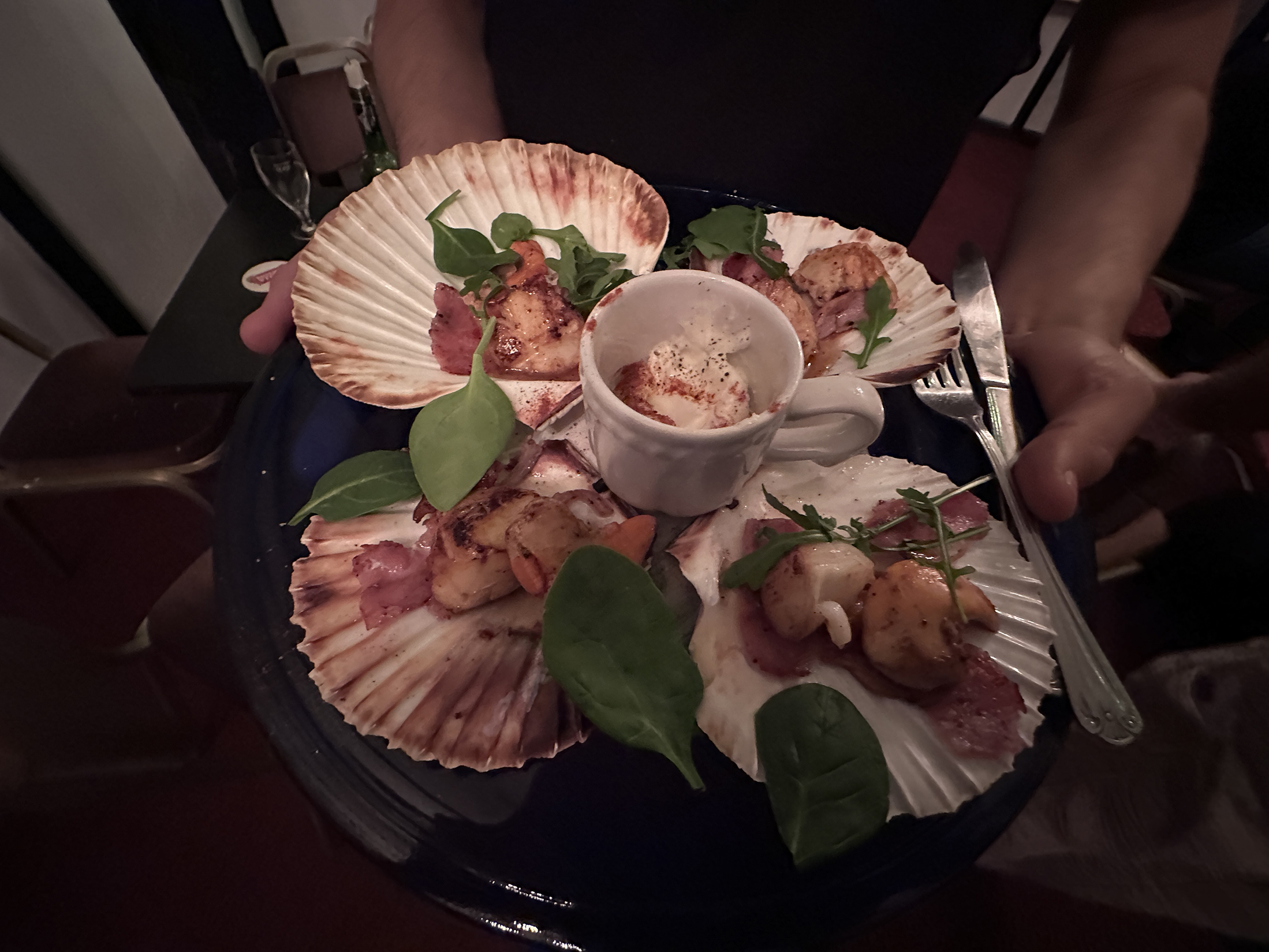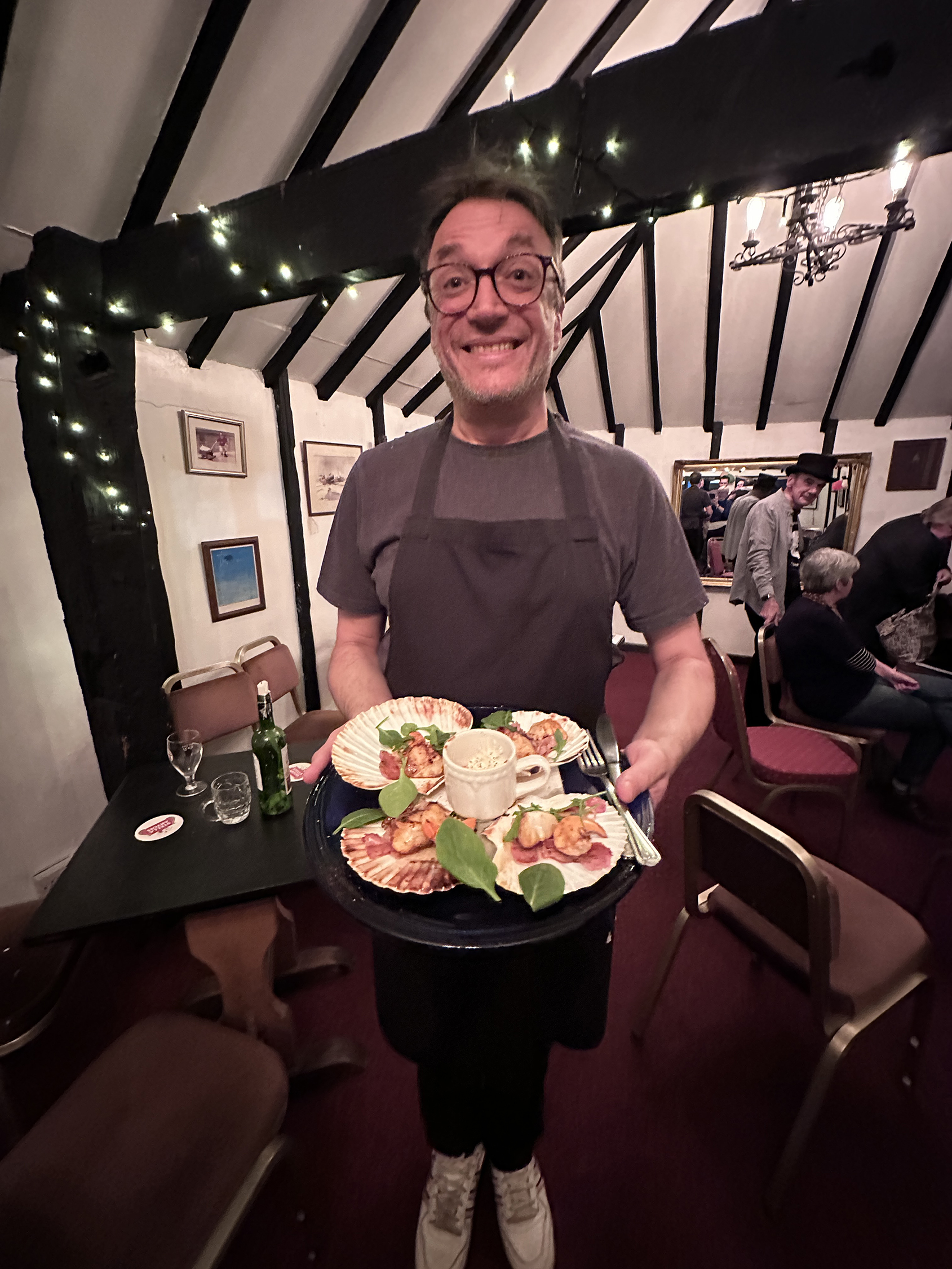 People stayed on afterwards to chat to the group and ask about the songs and their origins. Jonathan and his delightful staff provided refreshments afterwards including the most delicious scallops. They had done a roaring trade during scallop week and supported the event wholeheartedly.