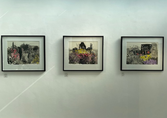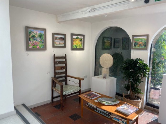 Hung in galleries 1 and 2, the works on view show his expressive and flamboyant approach to colour and form, and the pen and ink drawings that Louis talks about. “Including ink drawings in my mark making, adding another form of expression”, and these give new perspective on his life and work. A number are on prominent display in gallery 2, a particular favourite being “Brede Valley in Wintertime” (Indian ink), and “Seedheads” (Indian ink and watercolour). Such gentle, clear colours enhancing the bold black yew hedge behind.