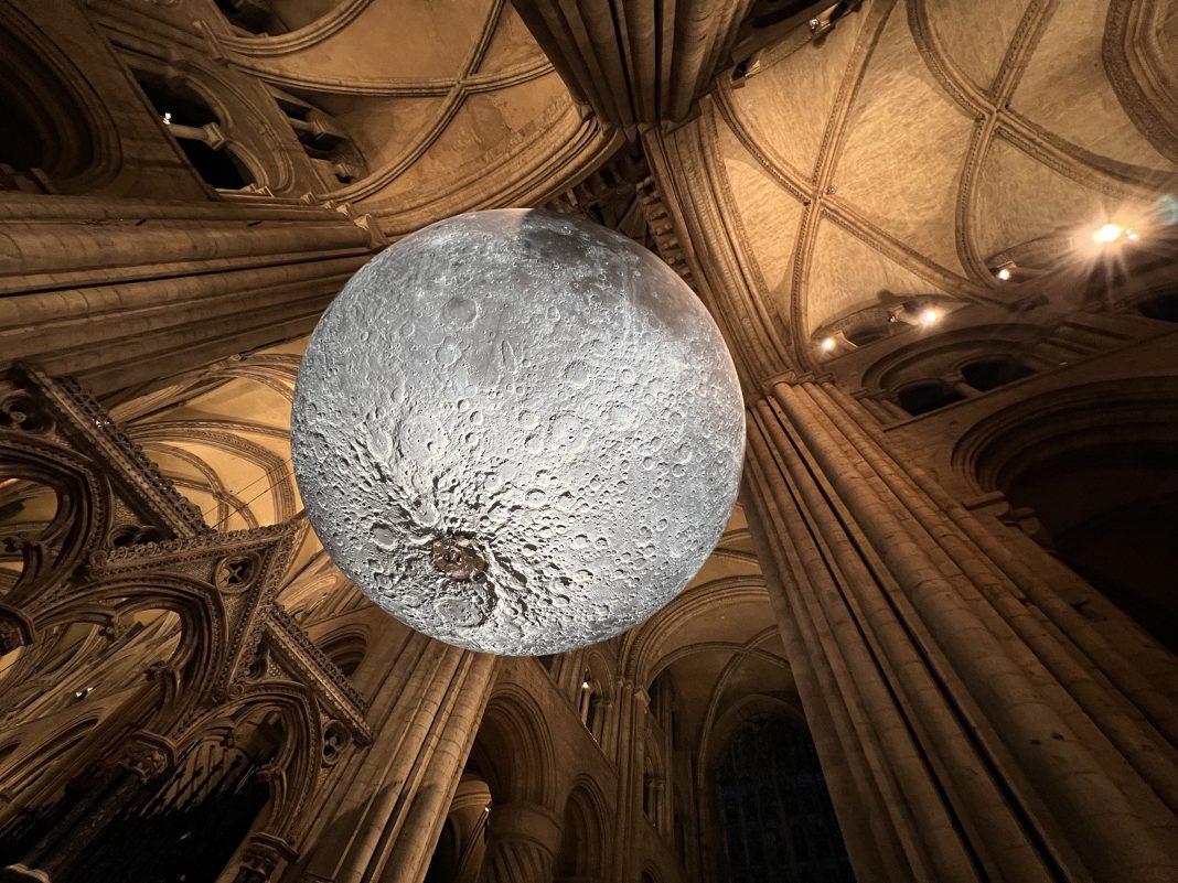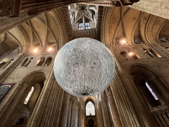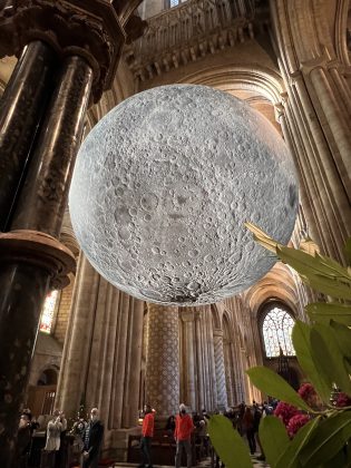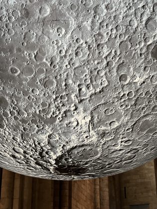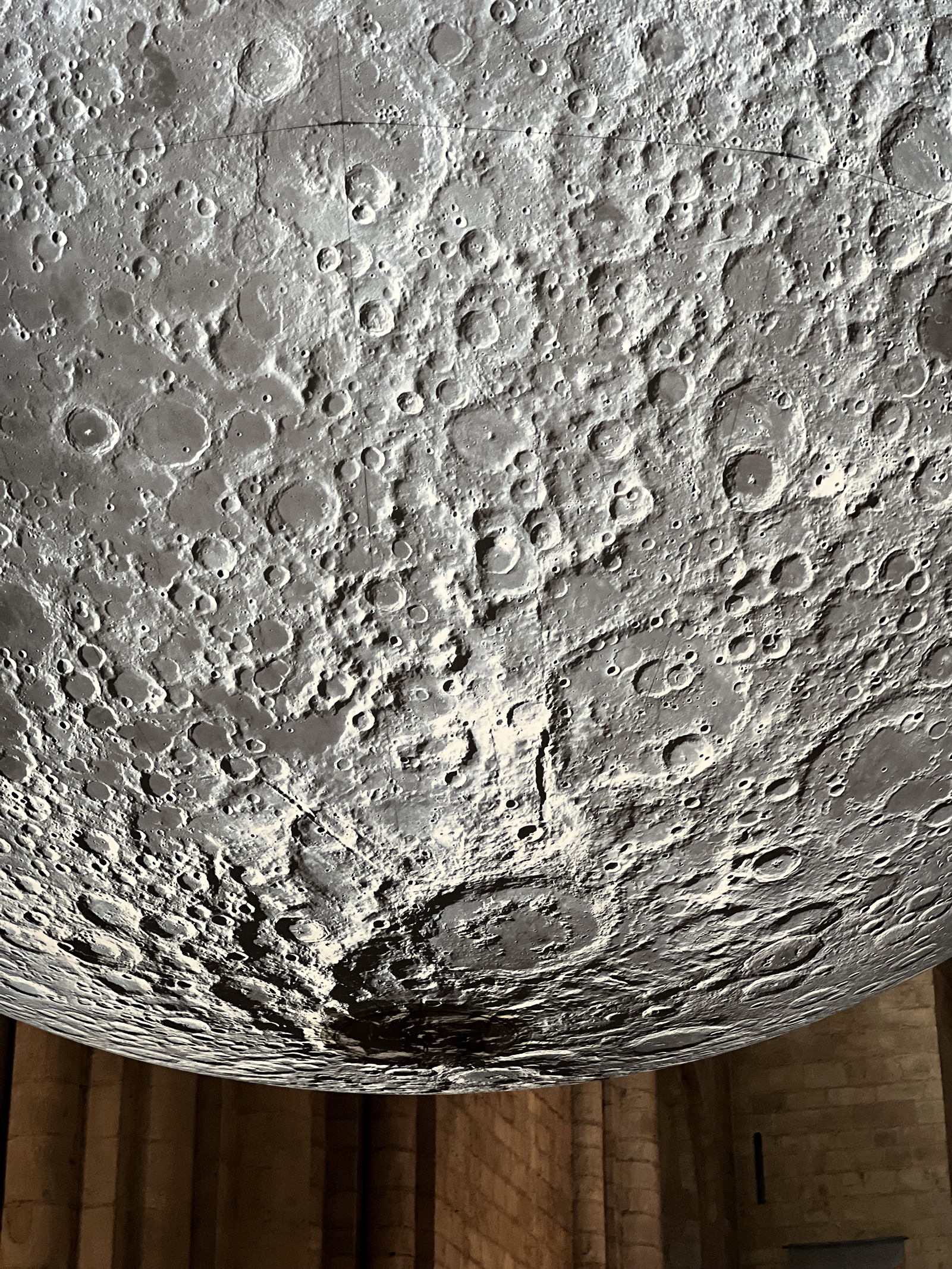 Museum of the Moon is a touring artwork by UK artist Luke Jerram. The moon measures seven metres in diameter and features 120dpi detailed NASA imagery of the moon’s surface, and the scale is 1:500,000
