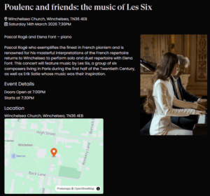 The Rye News What’s On Diary has loads of events to enjoy in and around Rye. Here’s a few classical music highlights.