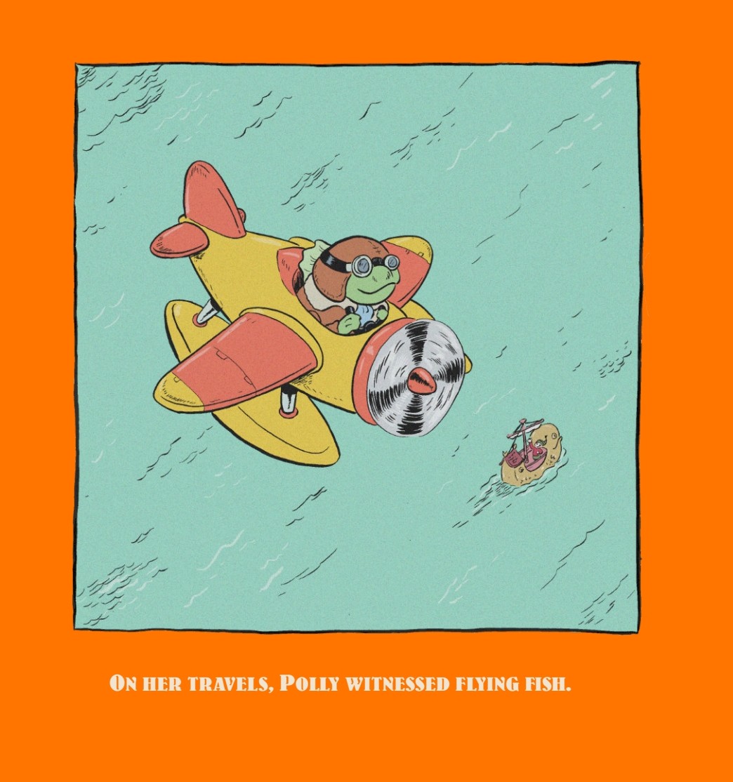 The bright colourful illustrations tell the story of Polly’s adventures in Professor Physh’s newly invented sailing boat. Portrayed in a fun, lively and humorous way, it is a great introduction for young children to the themes, creatures and characters found in other myths and stories from the sea, including Polly’s encounters with a sea dragon, pirates, King Neptune and flying fish.