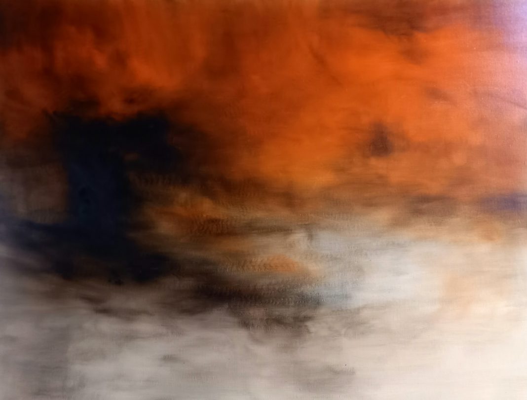 Julia Swaby’s exhibition “Translations” is inspired by ancient oriental ink drawings of landscapes, where turquoise and orange are used a lot. They were sometimes painted by Zen priests, giving the works a spiritual, almost other worldly quality.