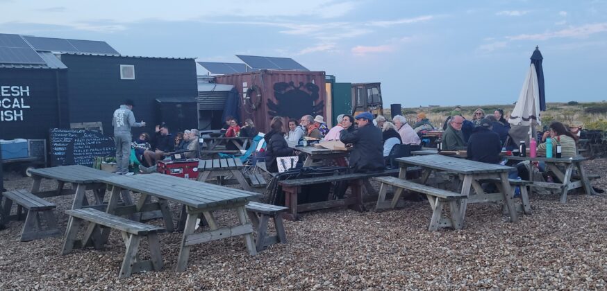 It is a magical evening, sitting on the shingle at the Snack Shack, surrounded by old lobster pots, abandoned mechanical equipment, grasses and vipers bugloss, with the pink of the sunset behind, the lights of the nuclear power station looming in the near distance and the flash of the lighthouse and car headlights. For a film nearly two and a half hours long, the audience was gripped by the story and script written by Sam Shepherd, the quiet, slow-pace and emotional depth of the direction and acting, and the atmospheric music of Ry Cooder.